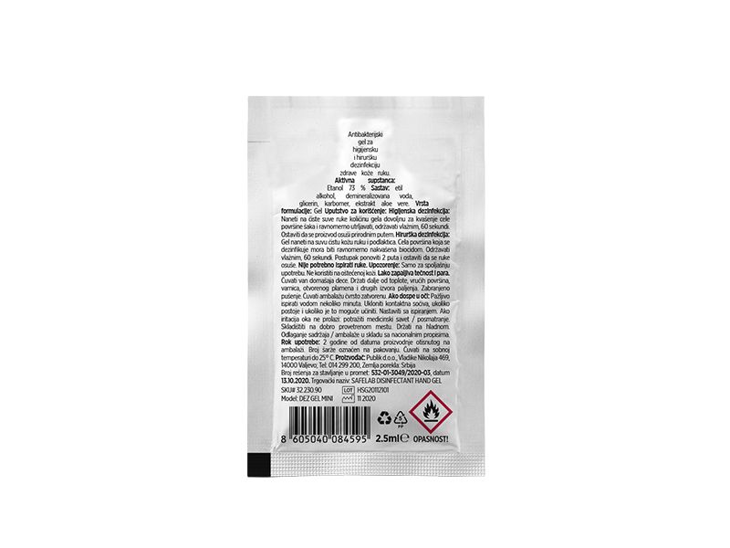 | Kratki opis | Antibakterijski gel za dezinfekciju ruku, 2.5 ml |