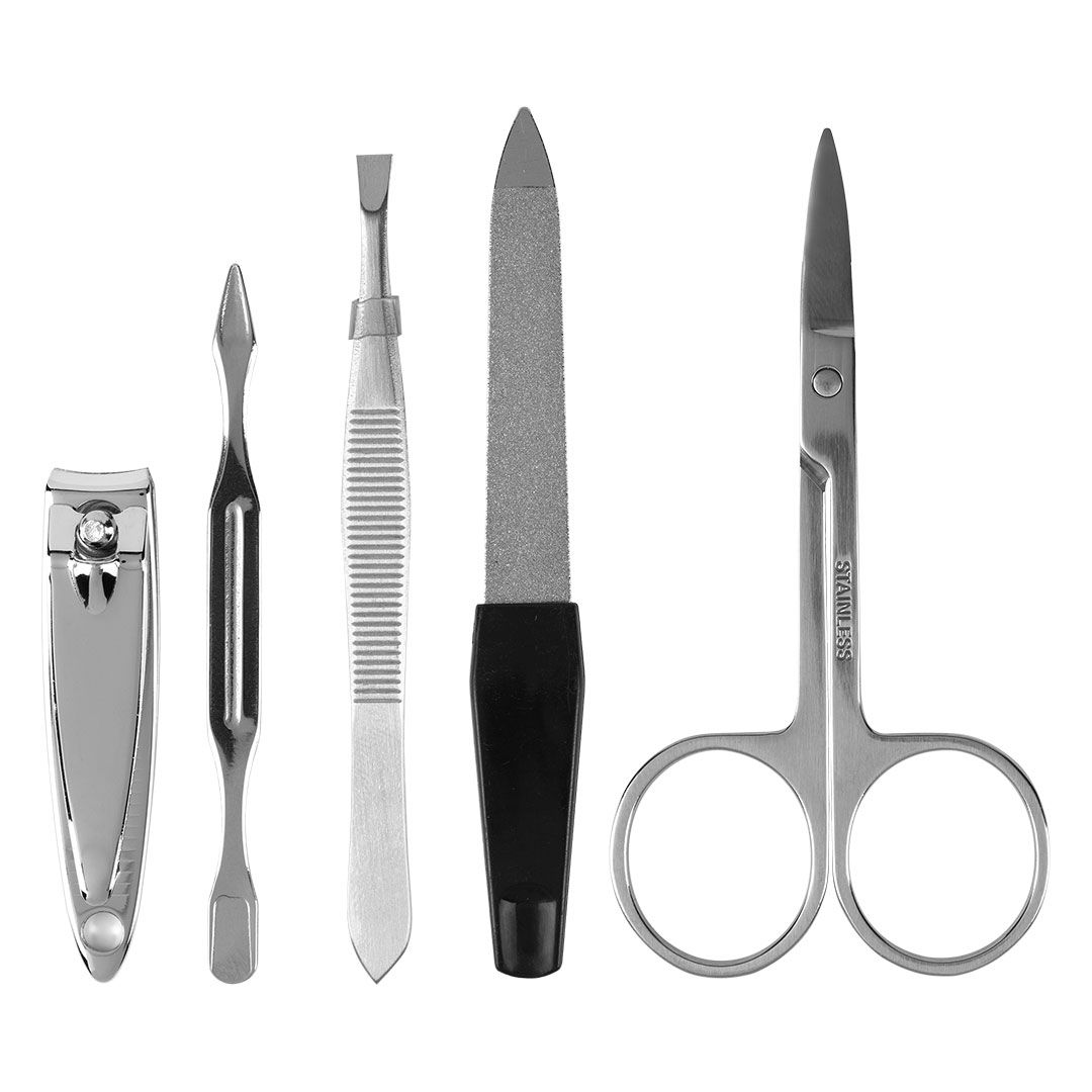 Manikir set sadrži: makazice, grickalicu, pincetu, turpiju i gurač zanoktica