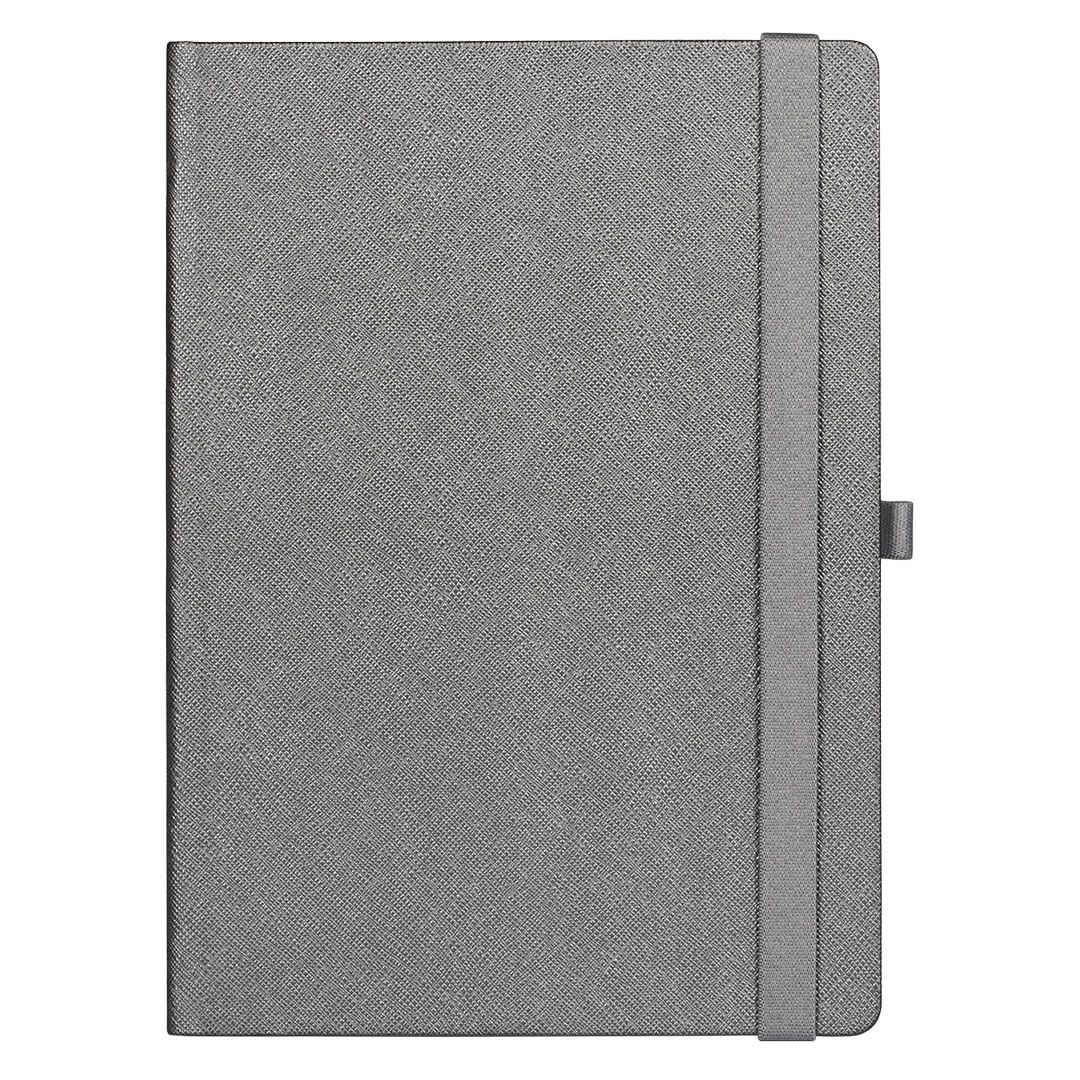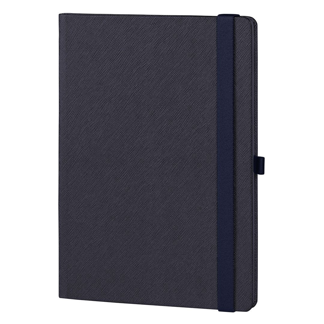 Notes sa zaobljenim ivicama, bojenom ivicom knjižnog bloka u boji korice, elastičnom trakom, držačem za olovku i džepom na unutrašnjoj strani zadnje korice