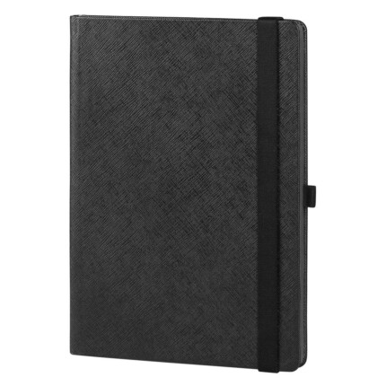 Notes sa zaobljenim ivicama, elastičnom trakom, držačem za olovku i džepom na unutrašnjoj strani zadnje korice