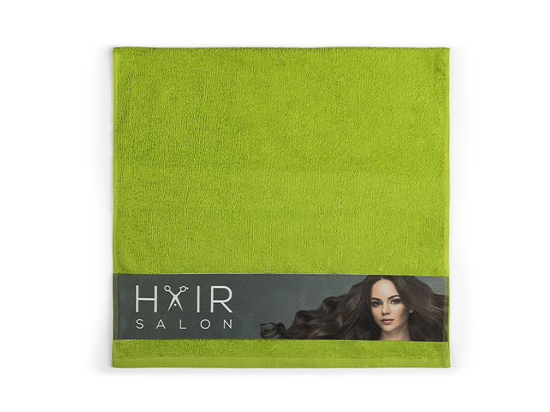 Peškir, 400 g/m2, bordura za brendiranje širine 10 cm i zakačka od pamučne trake u boji peškira