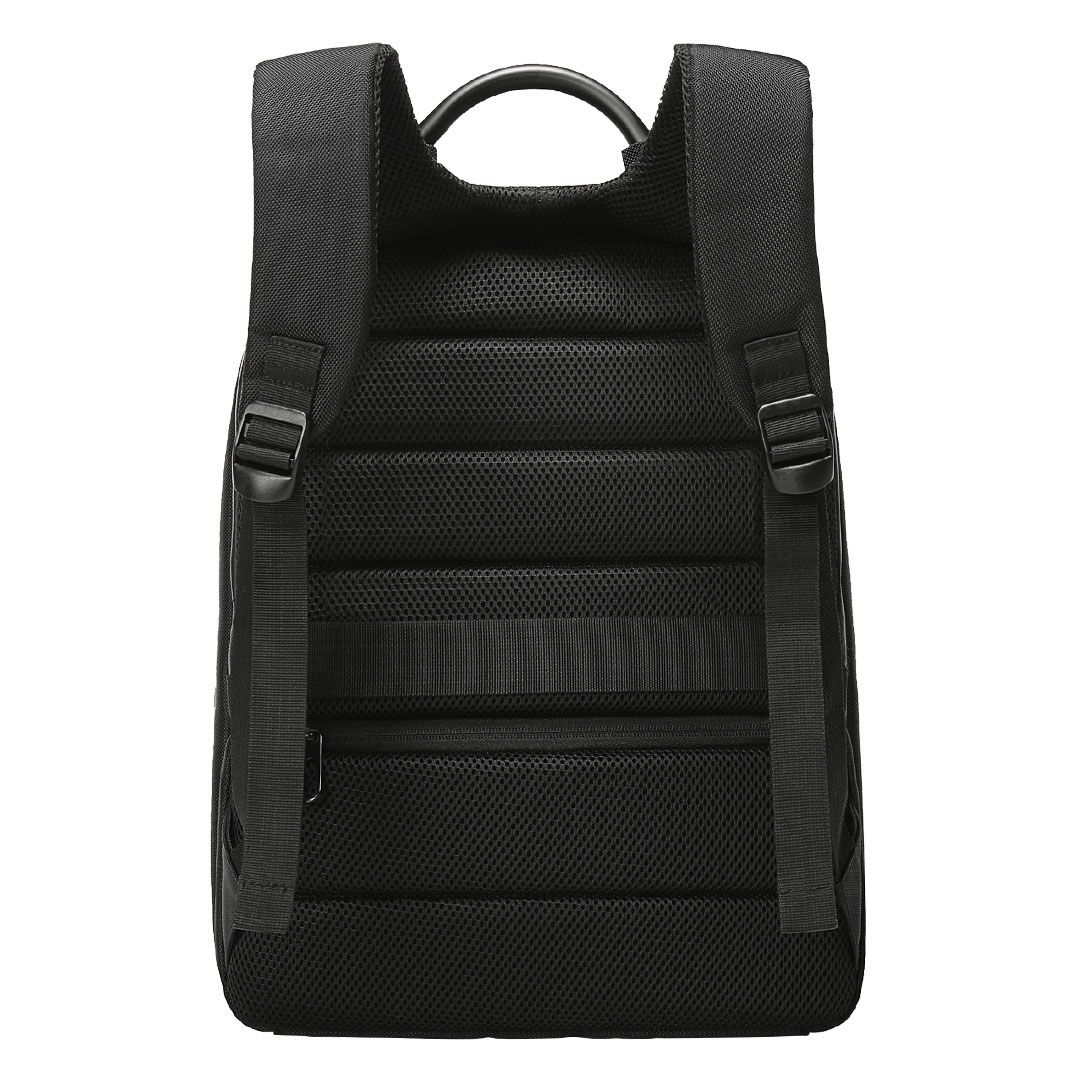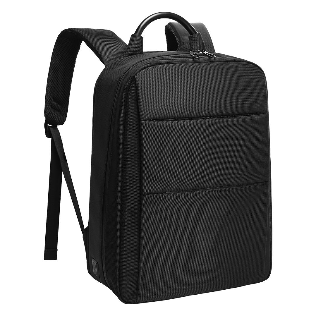 Poslovni ranac sa dva glavna odeljka, dva prednja džepa sa rajsferšlusom, naloženi odeljci za tablet i laptop veličine ekrana 15″, USB konektor, skriveni džep sa rajsferšlusom pozadi