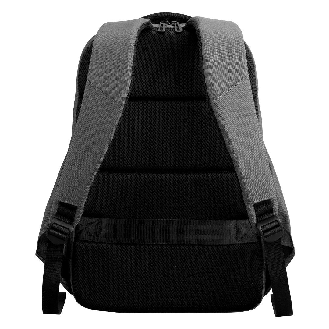 Poslovni ranac sa jednim glavnim odeljkom, naloženi odeljak za laptop veličine ekrana 15″, odeljak za tablet, dva džepa sa rajsferšlusom napred, USB konektor