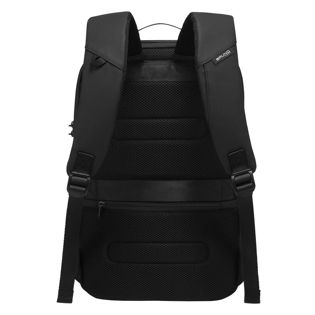 Poslovni ranac sa jednim glavnim odeljkom, odeljak za laptop veličine ekrana 15″, odeljak za tablet, vodootporni rajsferšlusi, džep sa rajsferšlusom napred, USB konektor, sigurnosna brava sa šifrom za zaključavanje ranca i skriveni džep pozadi