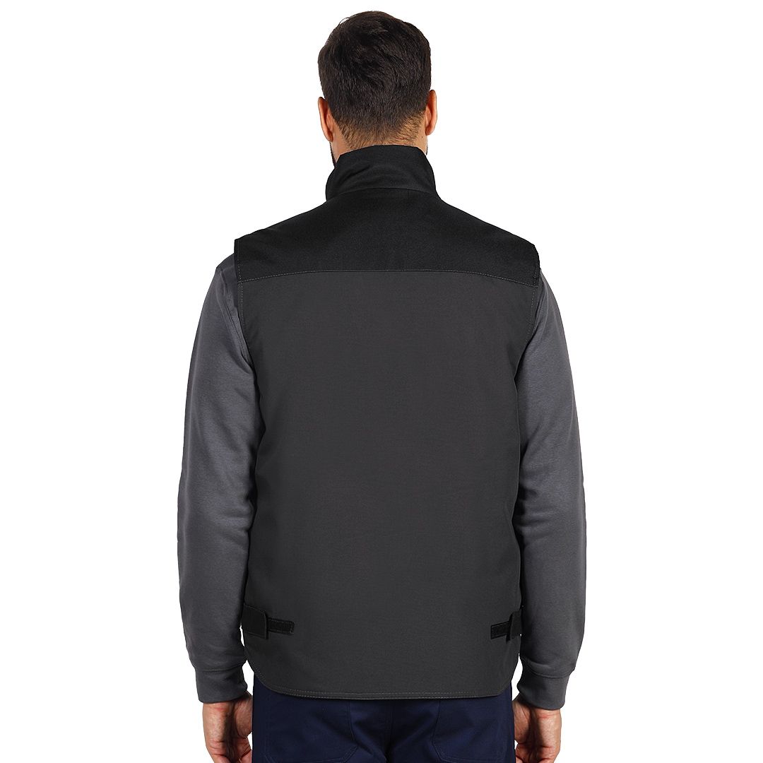 Prsluk, 270 g/m2, platno prepletaj, visoka kragna, ojačanja od 600D poliestera na mestima izloženim većem habanju, šest prednjih džepova, uključujući džep za mobilni telefon i dva džepa sa rajsferšlusom, jedan unutrašnji džep, čičak trake leđima za podešavanje širine u struku, skriveni unutrašnji rajsferšlus na leđima za lakši pristup prilikom štampanja