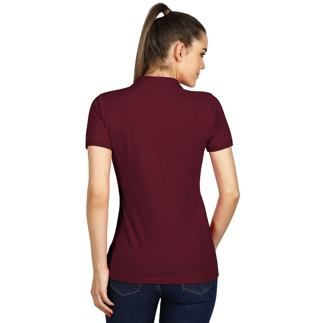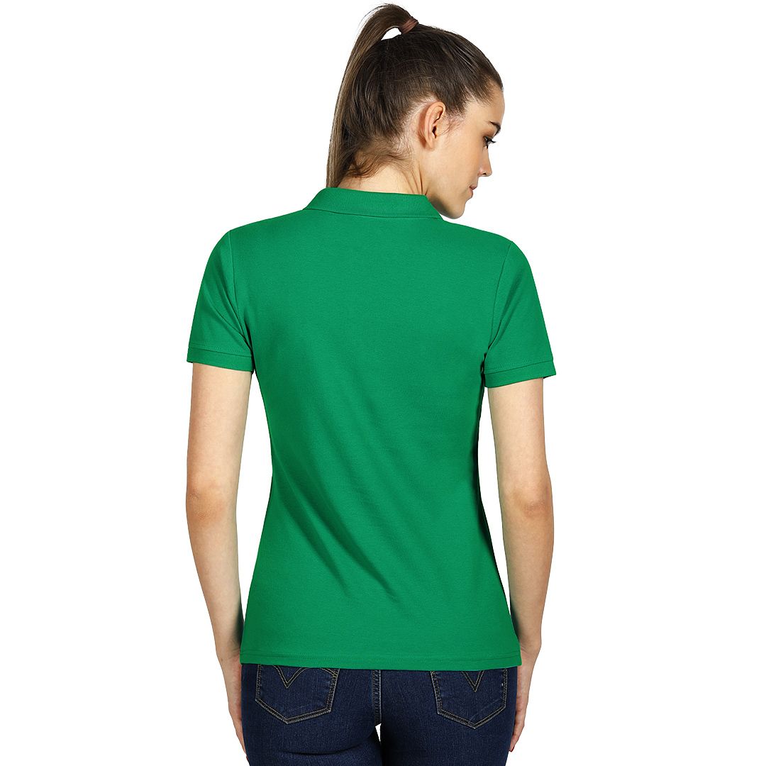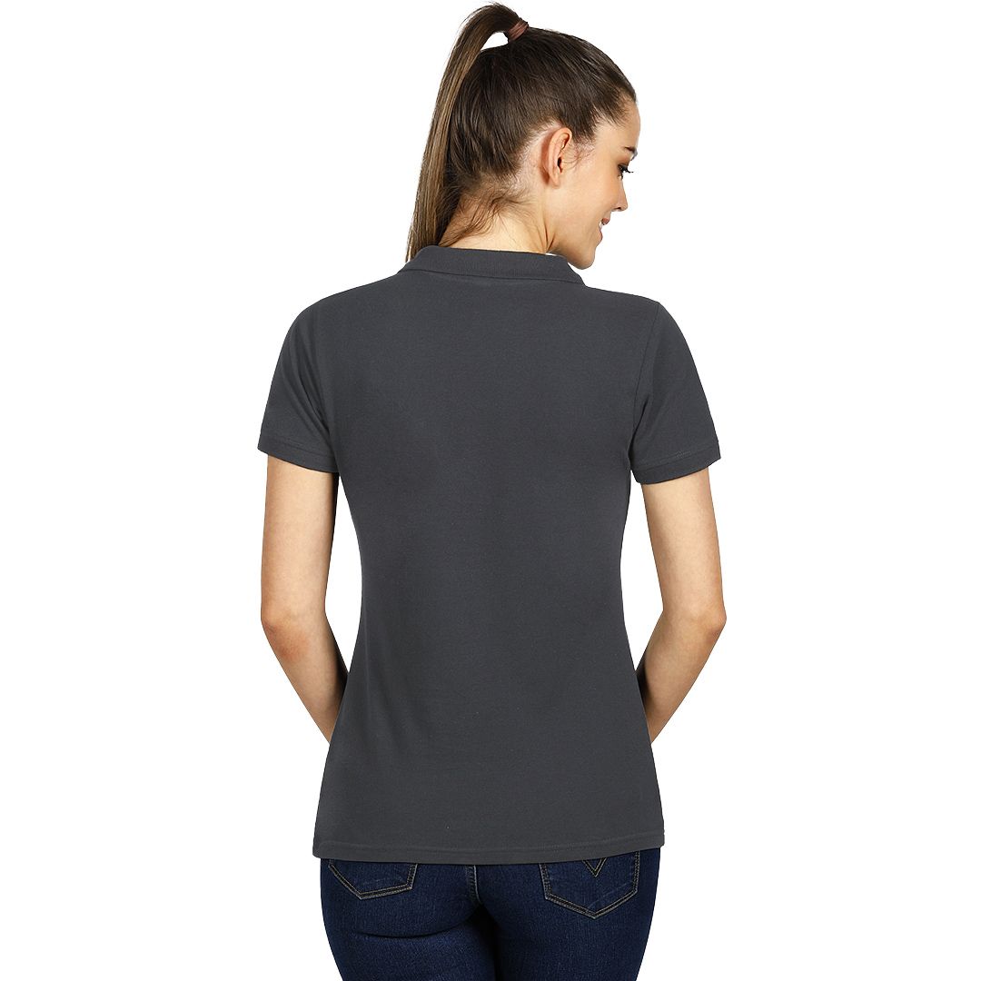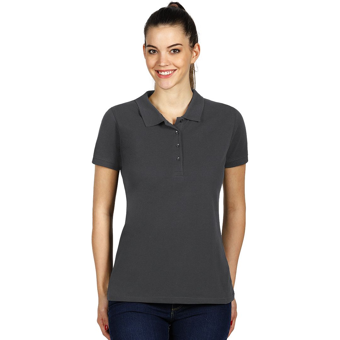 Ženska polo majica, 180 g/m2, blago strukirana, šivena sa strane, dupli štep na dnu, ranfle oko rukava, četiri dugmeta u boji majice, rezervno dugme, ojačana trakom duž vrata i dodatnim štepom duž ramena