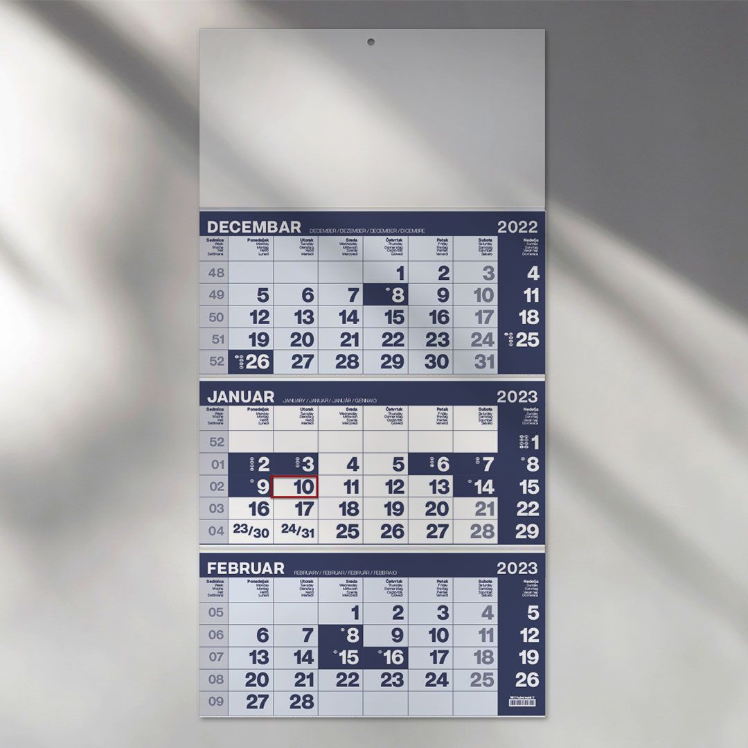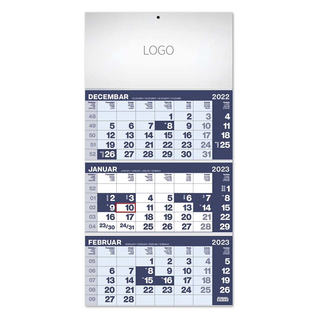 Zidni kalendar, 3 x 12 listova, tromesečni, trodelni POSLOVNI 17