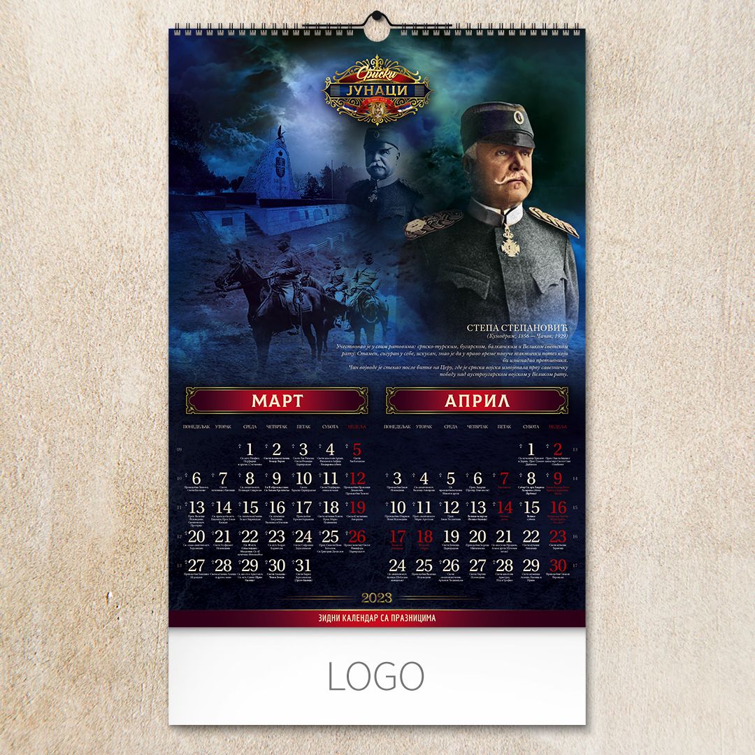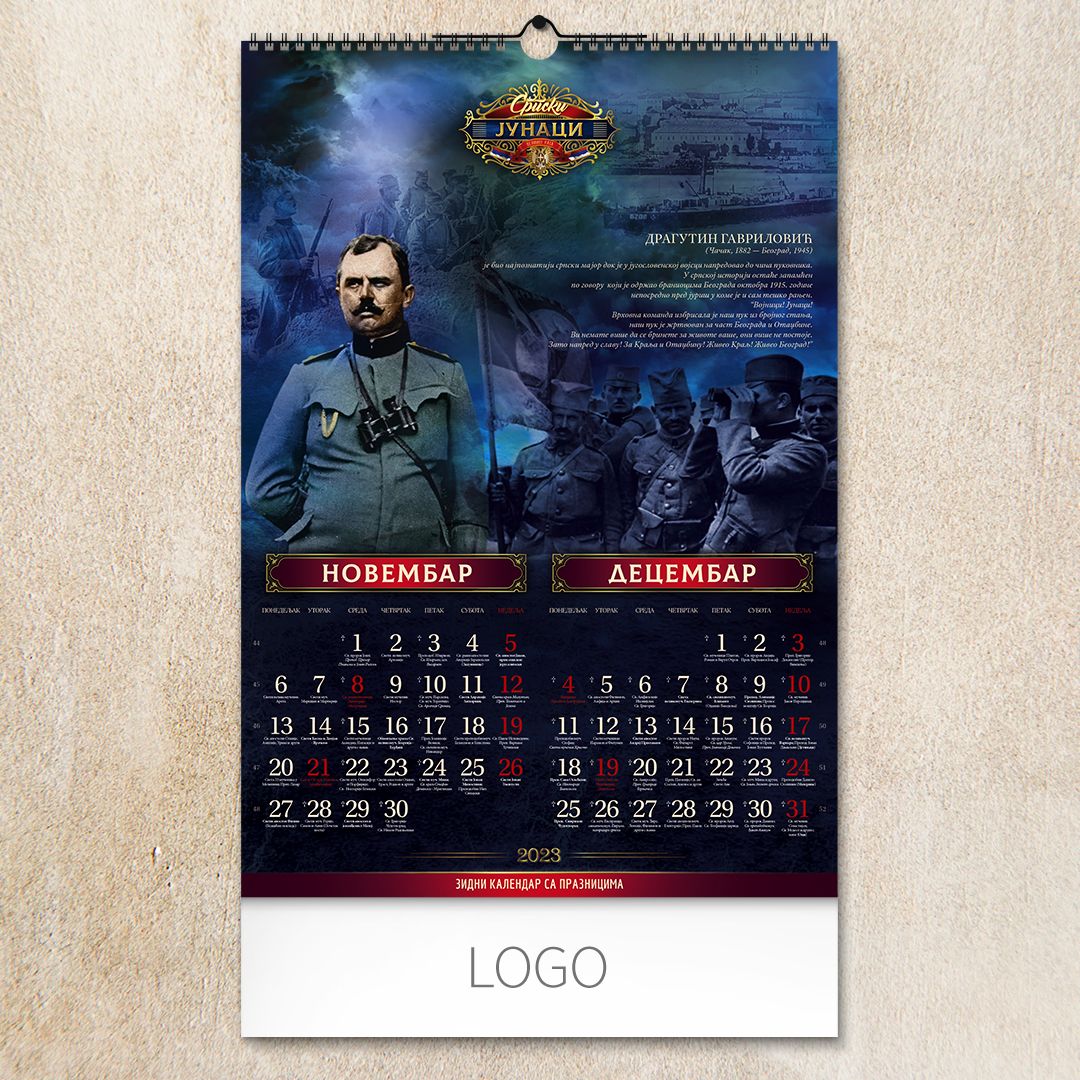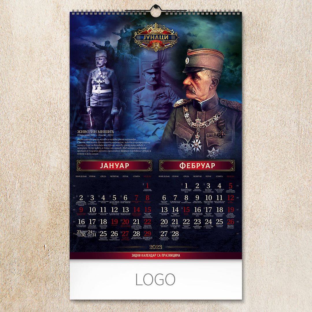 Zidni kalendar, 7 listova, dvomesečni SRPSKI JUNACI