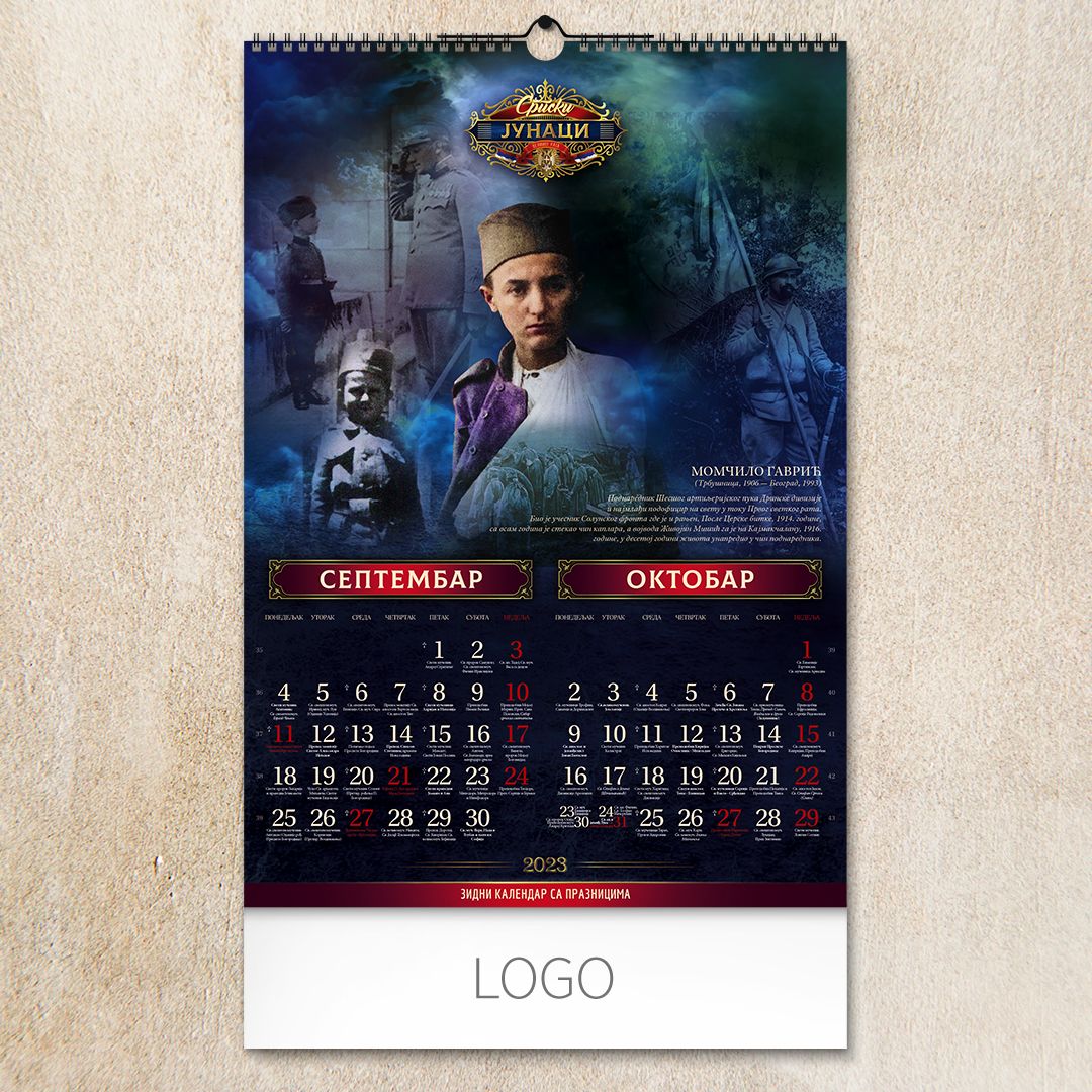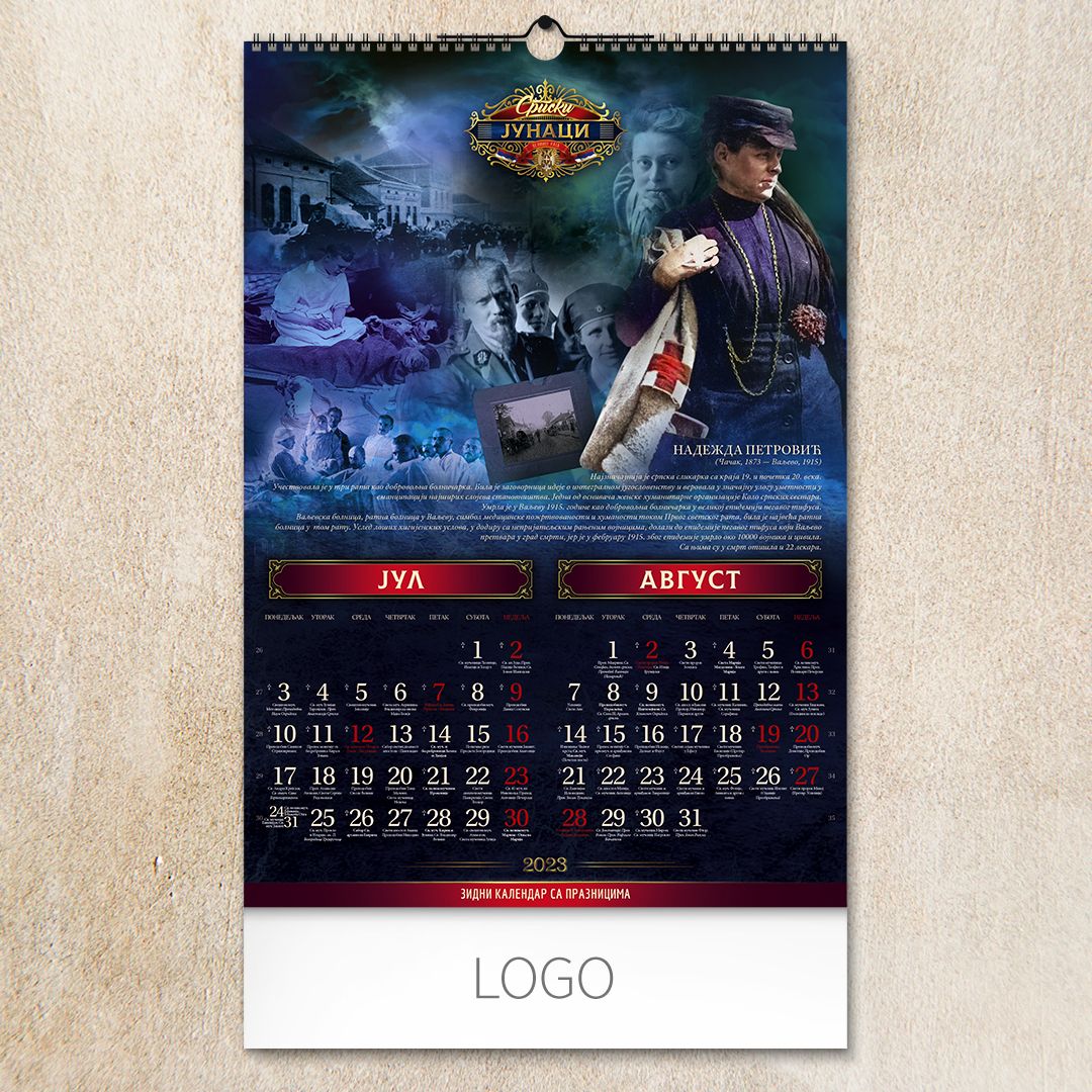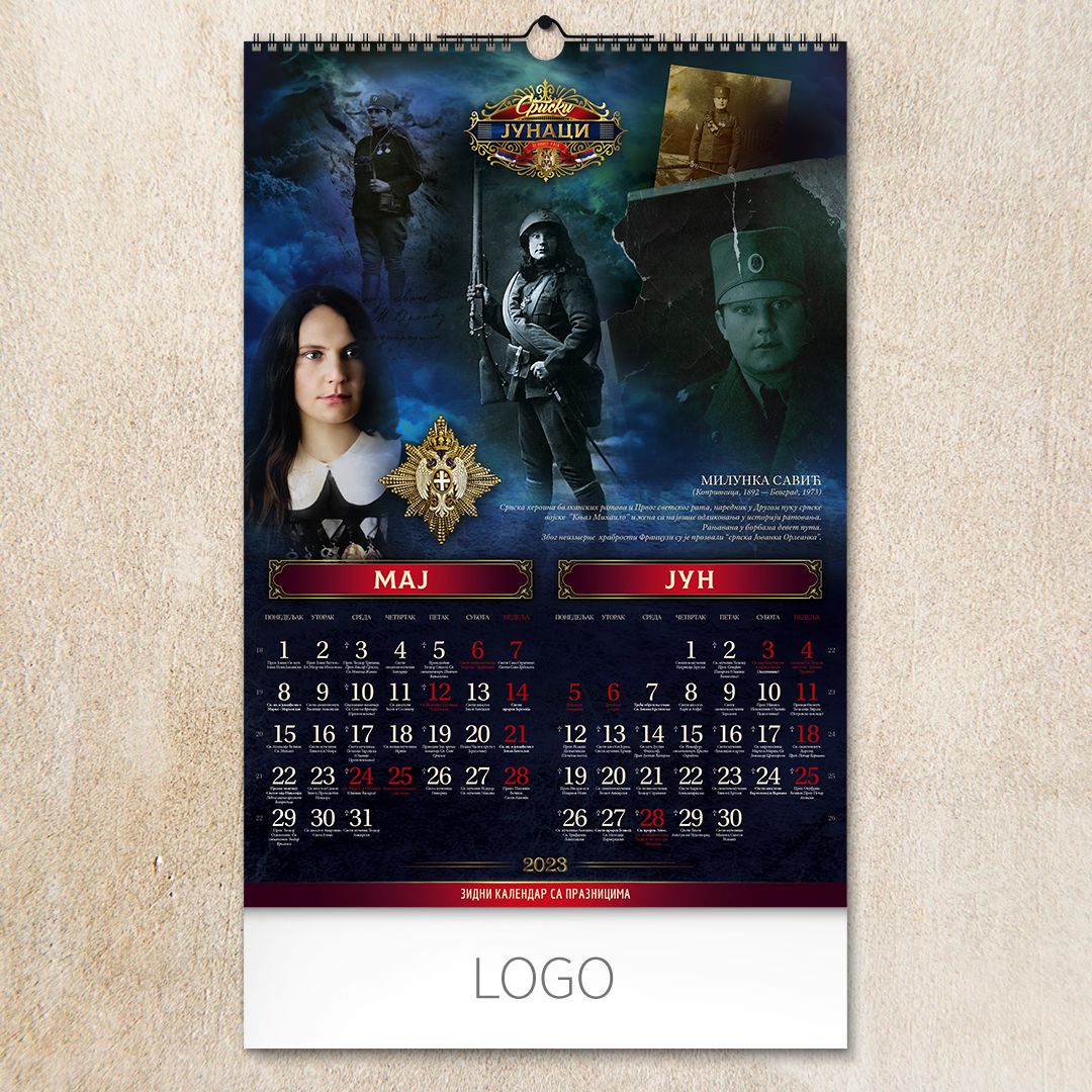 Zidni kalendar, 7 listova, dvomesečni SRPSKI JUNACI