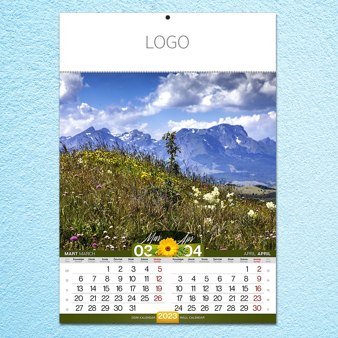 Zidni kalendar: 13 listova, mesečni PRIRODA 04